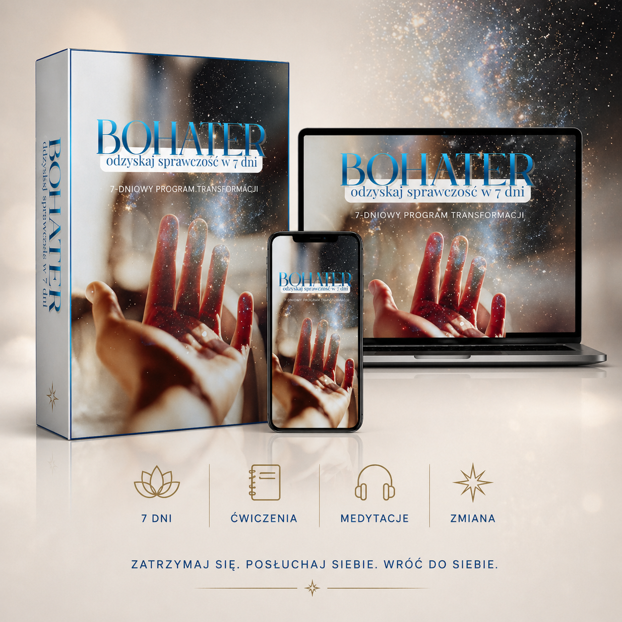 BOHATER to transformacyjny kurs online stworzony dla osób, które chcą wyjść ze stania w miejscu, uporządkować chaos w głowie i odzyskać wpływ na własne życie. Jeśli czujesz przeciążenie, napięcie, nadmiar myśli lub odwlekasz ważne decyzje – ten program pomoże Ci wrócić do siebie krok po kroku.